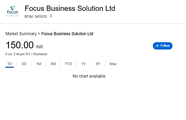 First and foremost, it needs to be noted that Focus Business Solutions has seen no exchange of shares since July 8th. Even on BSE, there is no fresh data available on July 21.