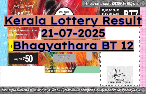 Kerala Lottery Date of Draw: 21/07/2025 Bhagyathara BT 12 Winners Numbers: