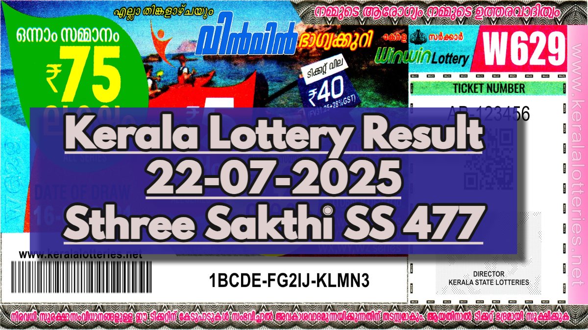 Kerala Lottery Date of Draw: 22/07/2025 Sthree Sakthi SS 477 Winners Numbers