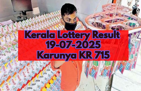 The lucky draw of Kerala Lottery result Karunya KR 715 went live at 3:00 of July 19, at Gorky Bhavan Near Bakery Junction, Thiruvananthapuram. The Karunya lottery with code of 'KR' is part of Kerala's weekly lotteries, run every Saturday of the week. The cost of the lottery was Rs 50. The first prize of Rs 1 crore is bagged by lottery ticket KT 224817 from IDUKKI district, while the agent is SUBAIR T P.
