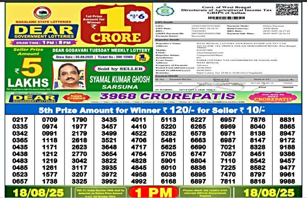 Nagaland Lottery Sambad Monday 18.08.2025 Result Timings
