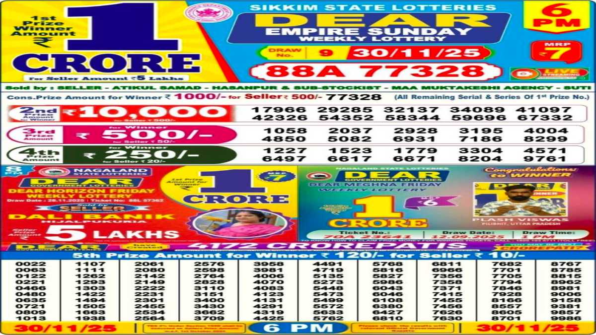 The Nagaland State Lottery continues to be one of the most popular government-approved lotteries in India, offering participants the chance to win substantial cash prizes, including a top reward of up to Rs 1 crore. The daily draws, held at 1 PM (Morning), 6 PM (Day) and 8 PM (Evening), attract lakhs of hopeful contestants who closely follow the Lottery Sambad results to check if fortune has favoured them.