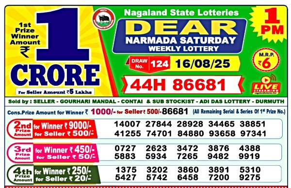 The Nagaland state is running three bumper lotteries on Saturday, August 16, which are part of sambad lottery. Nagaland's lotteries are divided into three parts, the 1 PM, the 6PM, and the 8PM bumper draw. The first prize winner will get Rs 1 crore on each of the lottery, while the second and third prize winners will get Rs 9,000 and Rs 450. There is consolation prize of Rs 1,000 as well.