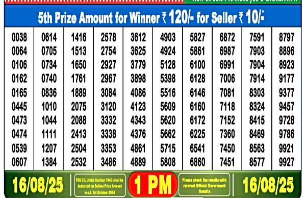 Check full list of 5th Prize Winner who will get Rs 120 and the seller will get Rs 10.