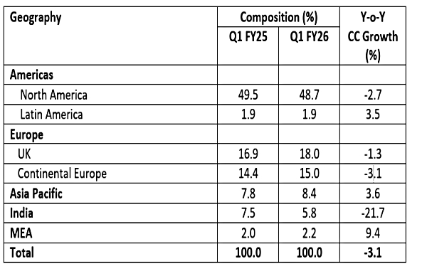On a geographical basis, India's business declined by 21.7%, followed by a 2.7% decline in North America as tensions over the US tariff loom.