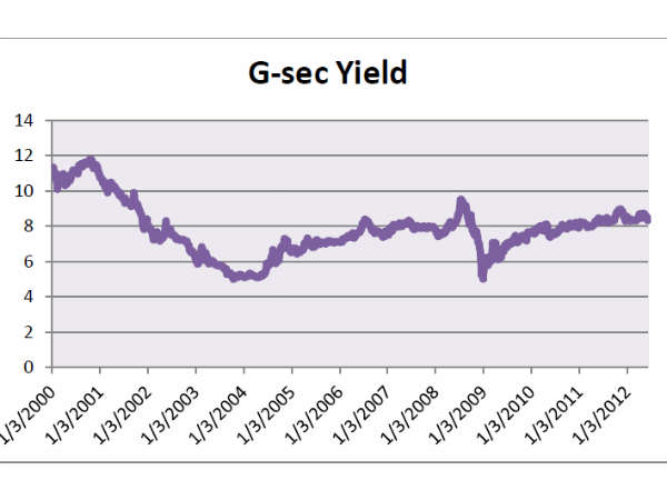 The above chart shows you the 10-year G-sec yield from the year 2000. The full name of G-Sec is Government Securities.