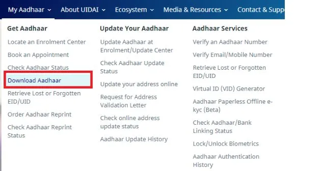 Step 2: Select ‘Download Aadhaar’ option under the ‘My Aadhaar’ heading