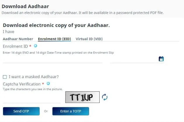 If in case, the aadhaar cardholder has forgotten, the aadhaar number then one can still download aadhaar card using the Aadhaar Enrollment Identification Form (Enrollment ID) by following the below-mentioned steps: