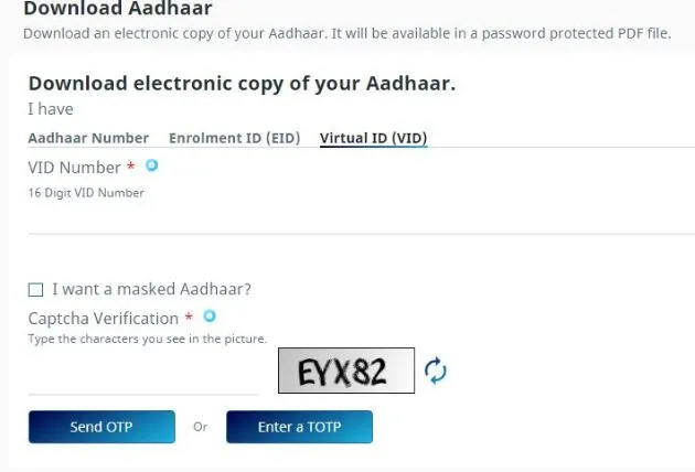 The aadhaar download using the Virtual Identification Form (VID) is the new addition to the UIDAI’s portal. Follow the below-mentioned steps to download aadhaar card via VID.