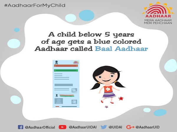 Now to segregate the aadhaar card for children aged below 5 years for whom the aadhaar is mandatory for getting school admission, UIDAI has introduced a special blue colour coded Baal Aadhaar.