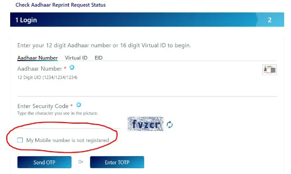 If in case an Aadhaar cardholder loses his or her Aadhaar card and their respective mobile number is not registered or linked with Aadhaar card, then they can follow the below-mentioned steps to get it reprinted.