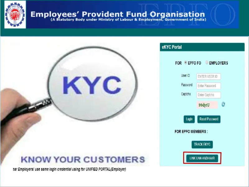 Below are the steps to link Aadhaar with your EPF account with e-KYC Portal of EPFO using the OTP feature: