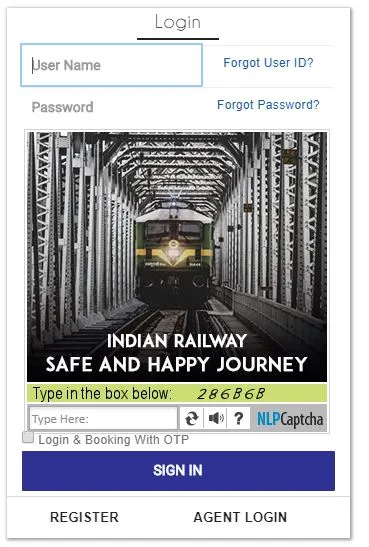 Step 2: Login to the IRCTC website using the username and password