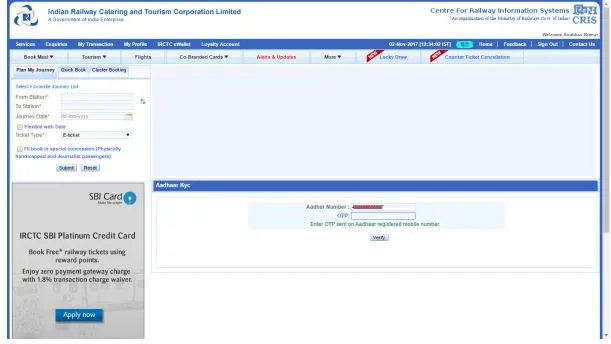 Linking of Aadhaar Card details with IRCTC Account helps travellers to easily book more e-tickets every month and users can book up to 12 e-tickets in a month. The users should get themselves verified through their aadhaar number along with at least one passenger’s aadhaar verification to book the rail tickets. The procedure to link aadhaar card details with IRCTC is simple and easy and can be done successfully by following few steps via online.