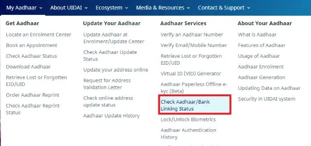 2. Select the option ‘Check Aadhaar and Bank Account Linking Status’